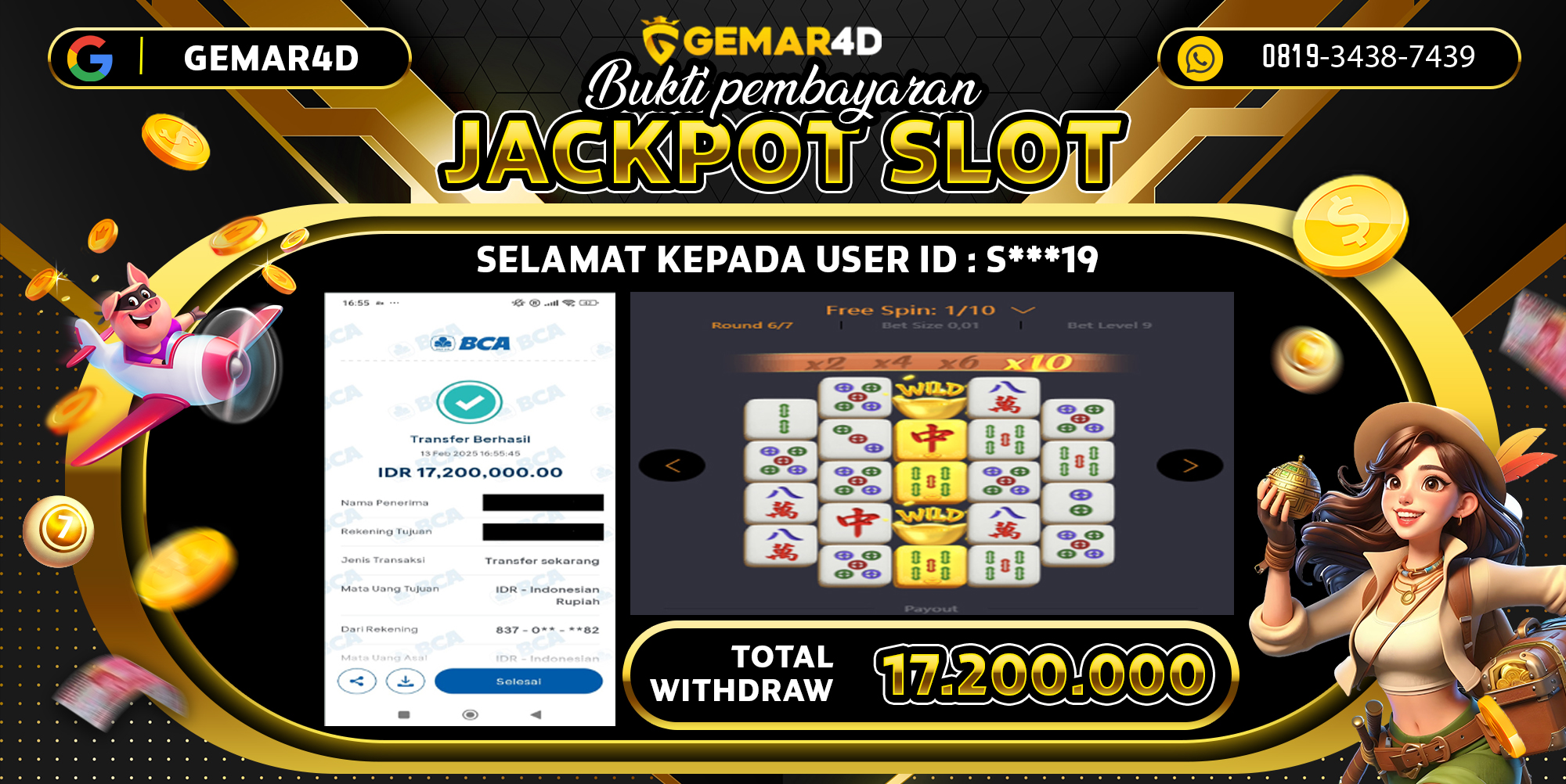 Selamat atas kemenangan User ID : S***19, yang telah berhasil mendapatkan kemenangan di permainan SLOT MAHJONG dengan kemenangan sebesar Rp17.00.000,- . Setelah mengisi formulir withdraw, hanya dalam jangka waktu 2 – 5 menitan tim layanan pelanggan GEMAR4D telah berhasil mengirimkan semua saldo kemenangan ke User ID tersebut.
