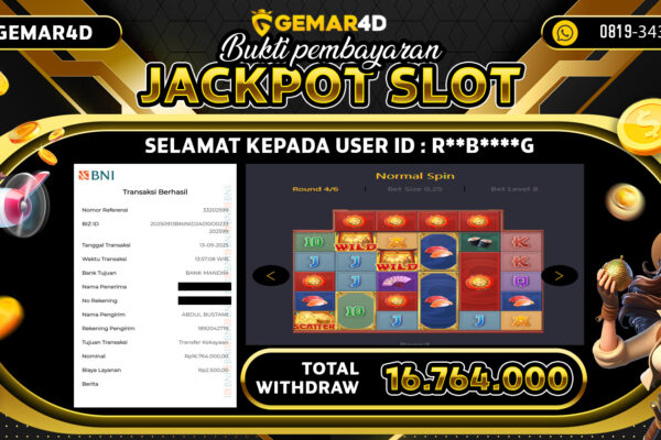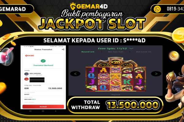 Selamat atas kemenangan User ID : J***T22, yang telah berhasil mendapatkan kemenangan di permainan SLOT GATES OF OLYMPUS dengan kemenangan sebesar Rp13.208.000,- . Setelah mengisi formulir withdraw, hanya dalam jangka waktu 2 – 5 menitan tim layanan pelanggan GEMAR4D telah berhasil mengirimkan semua saldo kemenangan ke User ID tersebut. Kami ucapkan Terima Kasih sebesar-besarnya pada pemenang yang…