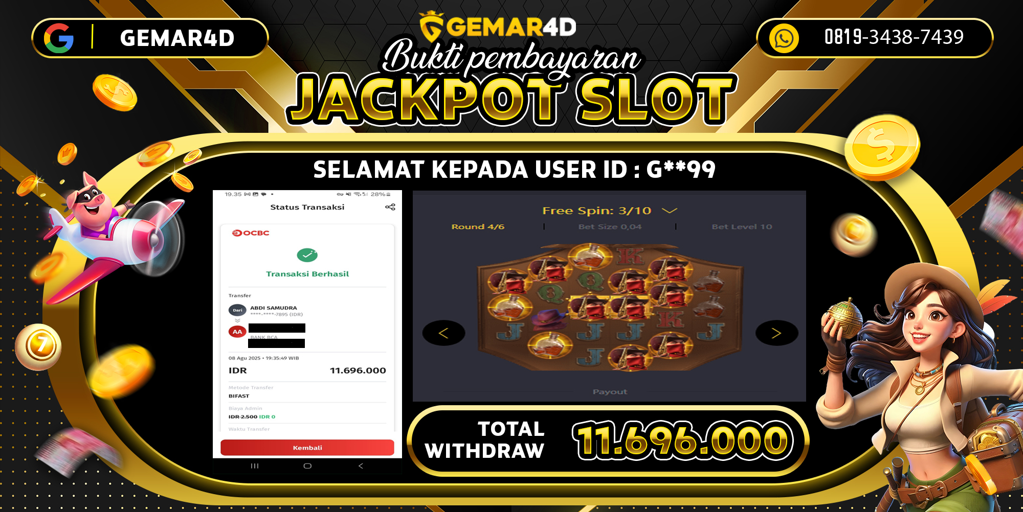 Selamat atas kemenangan User ID : G**99, yang telah berhasil mendapatkan kemenangan di permainan SLOT MAHJONG dengan kemenangan sebesar Rp11.696.000,- . Setelah mengisi formulir withdraw, hanya dalam jangka waktu 2 – 5 menitan tim layanan pelanggan GEMAR4D telah berhasil mengirimkan semua saldo kemenangan ke User ID tersebut.