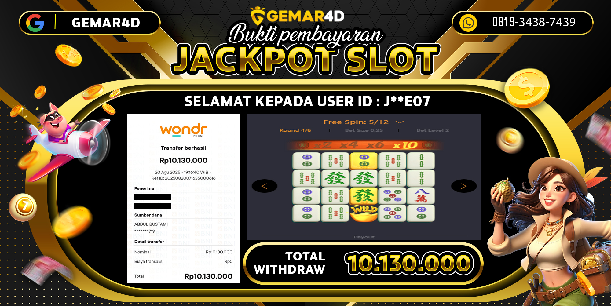 Selamat atas kemenangan User ID : J**E07, yang telah berhasil mendapatkan kemenangan di permainan SLOT MAHJONG dengan kemenangan sebesar Rp15.000.000,- . Setelah mengisi formulir withdraw, hanya dalam jangka waktu 2 – 5 menitan tim layanan pelanggan GEMAR4D telah berhasil mengirimkan semua saldo kemenangan ke User ID tersebut.