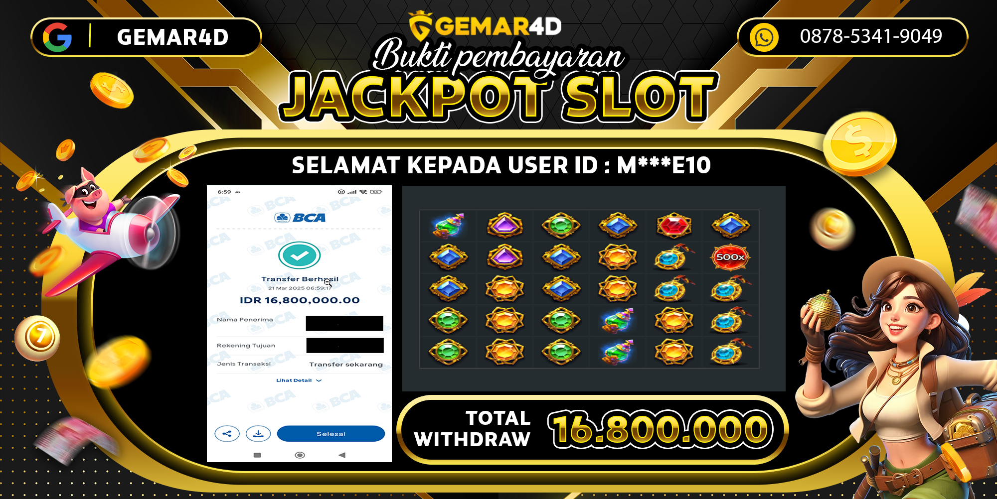 Selamat atas kemenangan User ID : M***E10, yang telah berhasil mendapatkan kemenangan di permainan SLOT GATES OF GATOT KACA 1000 dengan kemenangan sebesar Rp16.800.000,- . Setelah mengisi formulir withdraw, hanya dalam jangka waktu 2 – 5 menitan tim layanan pelanggan GEMAR4D telah berhasil mengirimkan semua saldo kemenangan ke User ID tersebut.