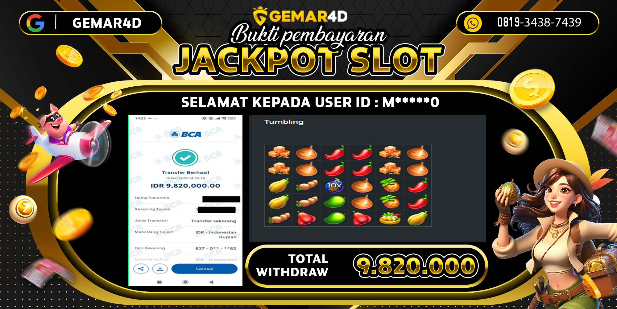 Selamat atas kemenangan User ID : M******0, yang telah berhasil mendapatkan kemenangan di permainan SLOT RUJAK BONANZA dengan kemenangan sebesar Rp9.820.000,- . Setelah mengisi formulir withdraw, hanya dalam jangka waktu 2 – 5 menitan tim layanan pelanggan GEMAR4D telah berhasil mengirimkan semua saldo kemenangan ke User ID tersebut.